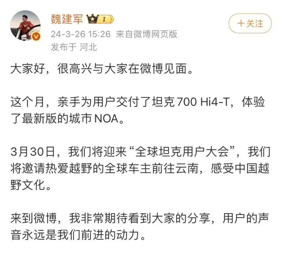 一方面,这缺少了一道“防火墙”。魏建军勇敢走到台前,打破了长城以往偏传统的形象,获得了巨大声量,但也撤掉了个人与企业之间的“保护屏障”。一旦产品或经营出现问题,他需要直接面对,任何回应都会被放大审视,稍有不慎就可能引发个人IP和品牌的双重危机,雷军和小米的舆论口碑反转便是前车之鉴。