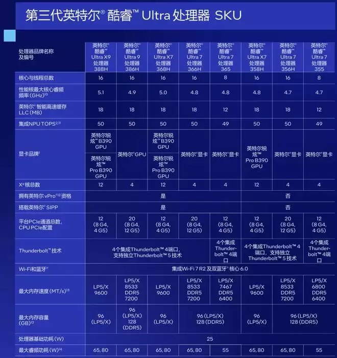 ●第三代酷睿Ultra处理器采用Intel 18A制程工艺,最高核心数量依然是16核16线程,与上一代保持一致;