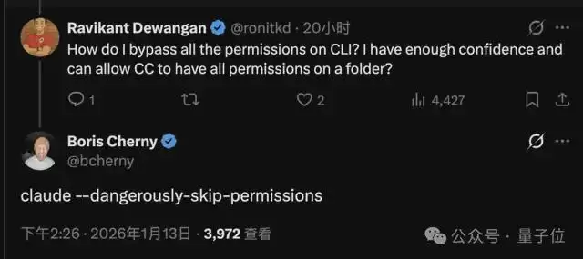 好在Claude团队在这方面也做了一些提醒措施,如果要给文件系统权限的话,命令参数是“危险地跳过许可”。