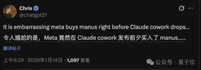 只是如此一来,花20亿美元买下Manus的扎克伯格就显得冤大头了……