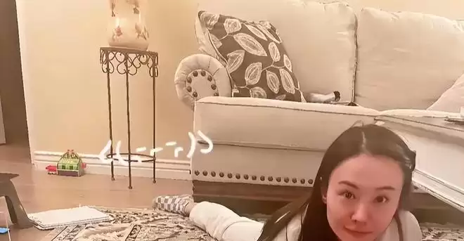 不止如此,郑爽身后的地板上随意的摆放着一个绿色小玩具,她亮着的手机屏幕里,疑似是一个小女孩在玩耍的视频。