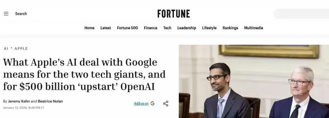 【环球网科技综合报道】1月14日消息,据《财富》报道,苹果公司与谷歌正式宣布达成一项重要人工智能合作协议,将谷歌的Gemini大模型深度集成至苹果生态系统,为升级版Siri及其他Apple Intelligence功能提供核心技术支撑。这一合作不仅标志着两家科技巨头在生成式AI领域的战略协同,也对估值高达5000亿美元的AI“独角兽”OpenAI构成显著影响。