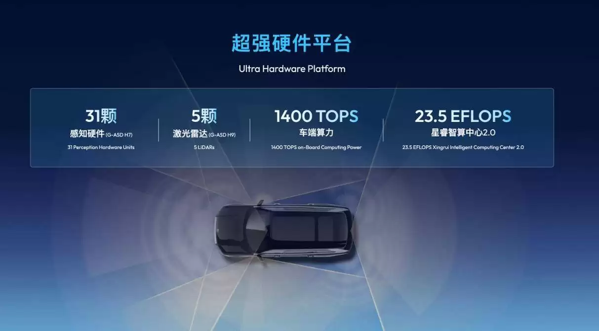 在硬件配置方面,千里浩界G-ASD同样展现出同级领先的水准。其H9版本标配5颗激光雷达,可实现3重360°全维覆盖,确保对周边环境的无死角感知;搭载两颗Thor芯片,提供1400TOPS的算力,支持毫秒级响应决策;星睿智算中心则以23.5EFLOPS的云端算力,为模型的快速迭代提供强大支持。在实际测试中,该系统展现出卓越的性能:多把掉头功能可灵活应对狭窄路口,通过类人操作完成精准转向;G-AES通用障碍物自动紧急转向系统能连续避让落石、纸箱等异形障碍物;车位到车位领航辅助功能则实现“P挡到P挡”全程托管,让出行更加无缝衔接、省心省力。