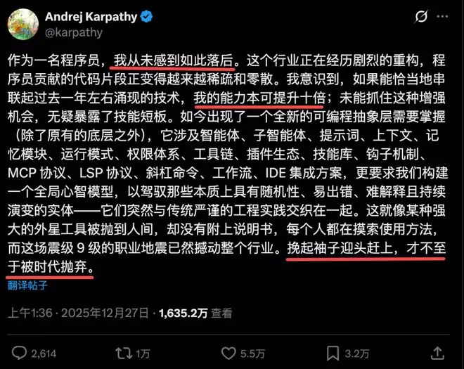 2025年12月27日,Andrej Karpathy发了一条推文。