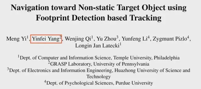 ▲2012年,Longin Jan Latecki教授发表论文《基于足迹检测的跟踪方法,实现对非静态目标物体的导航》,杨寅飞担任二作(图源:天普大学主页)