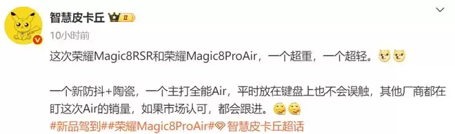 因为有博主称如果荣耀Magic8 Pro Air这种轻薄且全能的方案被市场认可,那么明年我们可能会看手机圈集体进入瘦身时代。