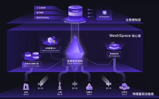 MeshSpace是面向EB级数据的全局非结构化数据平台。通过统一的全局命名空间,MeshSpace实现了跨地域、跨异构存储的数据流动与统一纳管。