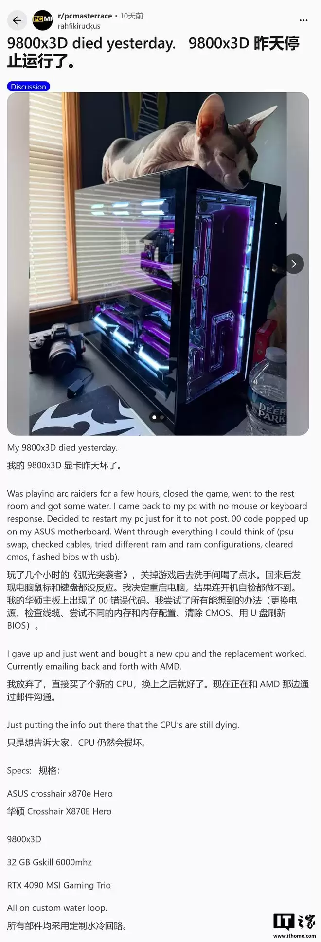该媒体指出,Reddit社区近期浮现两起报告,称该处理器在华硕X870E芯片组主板上出现了致命故障。