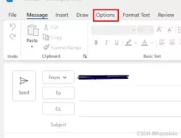 首先,打开Outlook并进入邮件编辑界面。撰写好邮件内容后,点击顶部菜单栏中的“选项”选项卡。