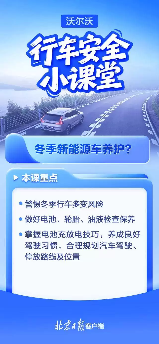 寒冬时节,新能源车的养护与使用成为车主们关注的焦点。沃尔沃安全小课堂近日推出冬季特别课程,围绕新能源车在低温环境下的安全驾驶与高效使用展开详细讲解,帮助车主应对冬季行车挑战。