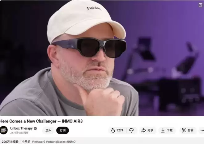 在海外市场,去年INMO AIR3在海外众筹平台上线并快速突破百万美元的亮眼成绩,并获得多位YouTube百万级、千万级科技博主的推荐。