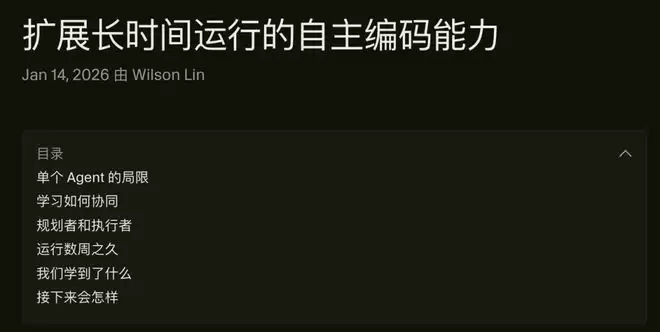 Cursor团队实现了上百个Agent可以在同一个代码库上协同工作数周,几乎没有代码冲突。