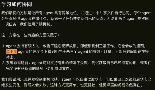 Agent会持有锁太久,或者干脆忘记释放锁。二十个Agent的速度下降到相当于两三个Agent的有效吞吐量。