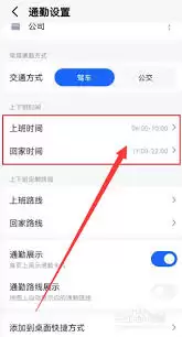 进入“常用出行设置”页面后,你会看到一系列与出行相关的设置选项。在这里,找到“上班时间”和“下班时间”选项。