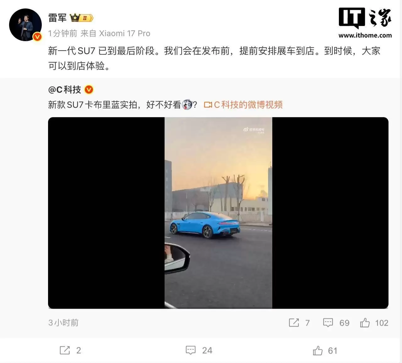 雷军官宣新一代SU7发布,展车提前到店,今晚直播详解