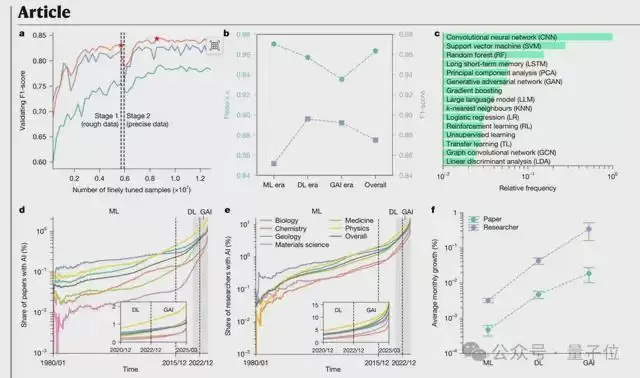 靠着这套方法,他们扫描了近50年来的海量文献(涵盖1980-2025年),最终画出了一张“AI赋能科研全景地图”。