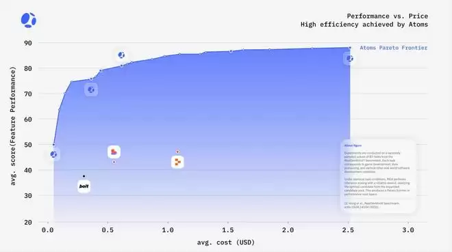 △Atoms与竞品的性价比对比。图源:DeepWisdom