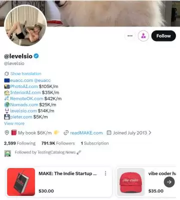 他自学成才,独立开发,从 2012 年到 2024 年,启动了 70 个创业项目,成功运营 40 个,最成功的是 Nomad List,一年盈利 210 万美金。2024 年后,做了几个 AI 产品,包括月入 13.8 万美元的 Photo AI 和月入 3.8 万美元的 Interior AI。
