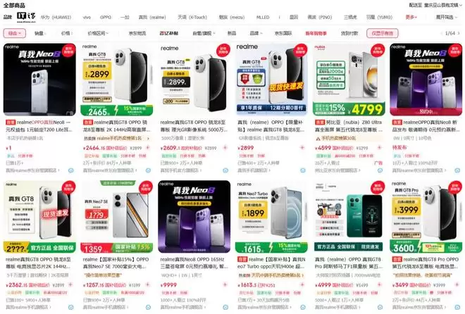 ▲ 京东平台:包括真我realme京东自营旗舰店、真我手机最新旗舰店等