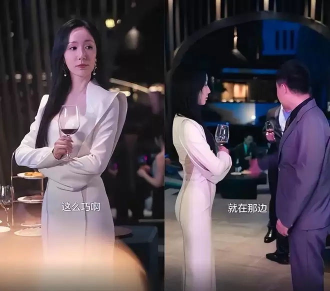 剧中林知予第一次出场就让人眼前一亮,在酒会上她一身白色长裙,姿态优雅,紧身的设计勾勒出了“S”形的身材曲线。