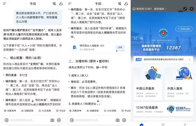 现在,千问将50项高频民生服务原生集成。用户只需询问“杭州户口如何办护照”,AI便能基于最新权威数据源提供清晰的指引、材料清单,并直接给出办理入口。这种能力已经不再是简单的查资料,而是对政策逻辑的即时翻译,让信息门槛近乎归零。