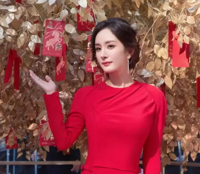 大牌护肤品新年活动,杨幂穿了一身红,和她张扬的气质相得益彰。