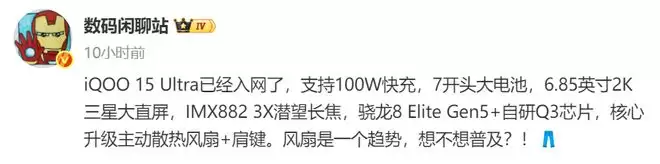 iQOO 15 Ultra突袭发布:2K屏与主动散热,标准版更值得入手