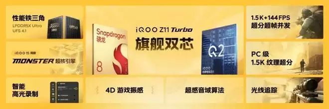 搭载第五代骁龙8旗舰移动平台,搭配自研电竞芯片Q2与Monster超核引擎,实现PC级纹理超分+144FPS超帧并发。