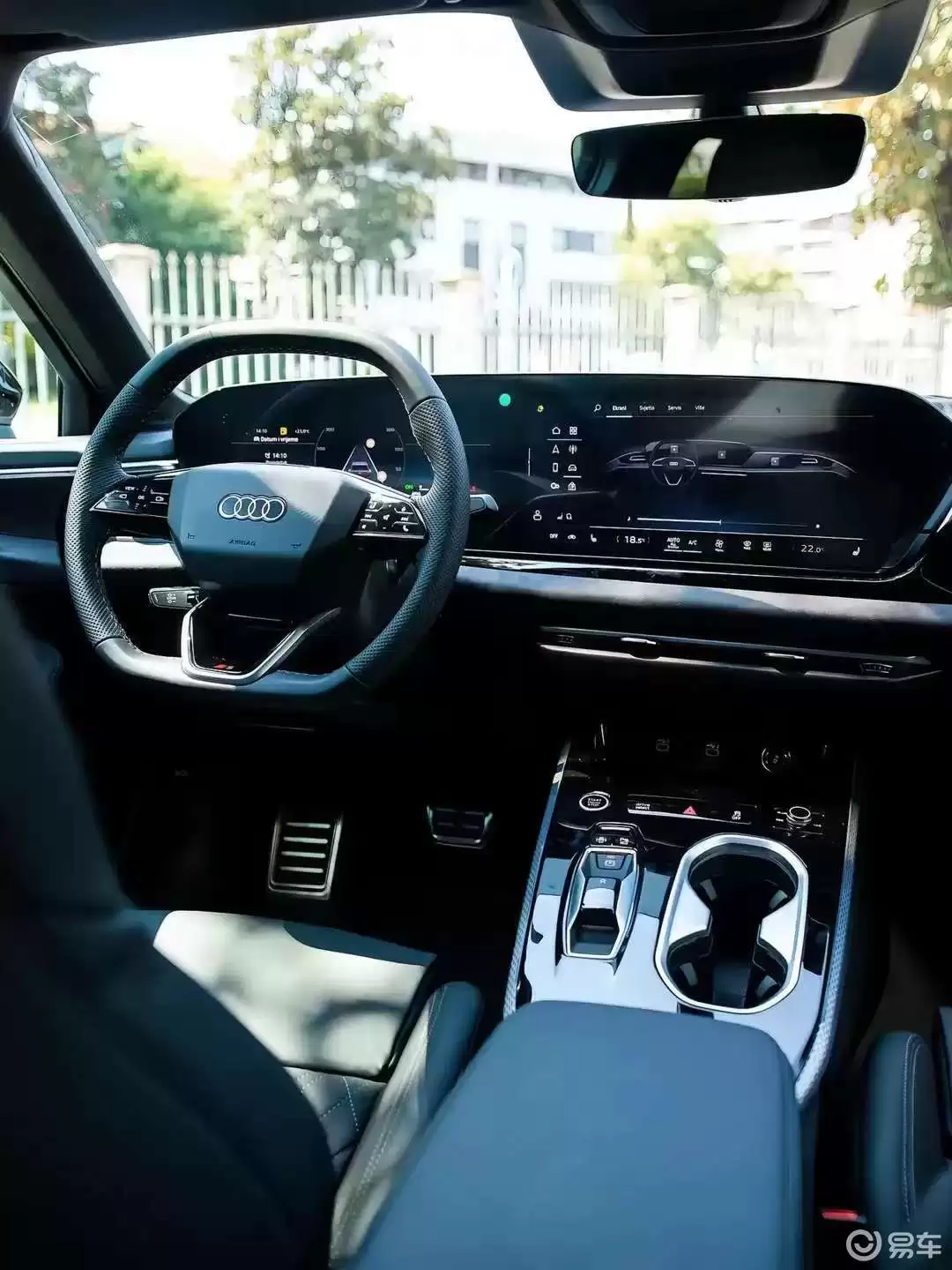 外观设计彻底摆脱传统官车形象,采用奥迪最新家族语言打造。前脸六边形进气格栅采用扁平化设计,内部高亮黑网格与贯穿式LED日行灯形成视觉焦点。两侧导流槽融入回旋镖式镀铬装饰,配合运动化前包围,营造出蓄势待发的姿态。车身尺寸达到5142/1887/1464mm,修长的车身配合半隐藏式门把手和花瓣式轮毂,展现出优雅与动感的平衡。