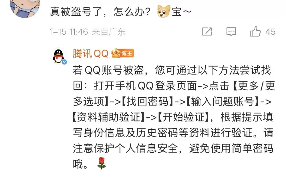 对此,腾讯QQ给出了最新解决方案:若QQ账号被盗,用户可在手机QQ登录页面依次点击【更多/更多选项】>【找回密码】>【输入问题账号】>【资料辅助验证】>【开始验证】,根据提示填写身份信息及历史密码等资料进行验证。