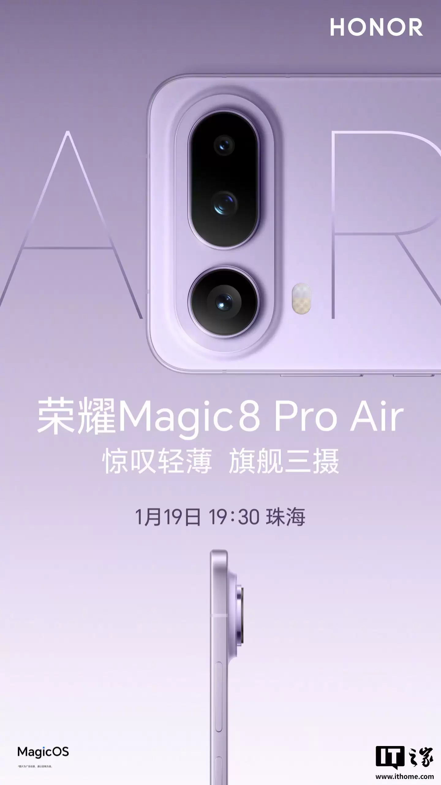 据IT之家此前报道,荣耀Magic8 Pro Air及荣耀联名设计系列新品发布会定于1月19日19:30举行。届时,发布会预计将带来Magic8 Pro Air、Magic8 RSR保时捷设计款等多款新机。