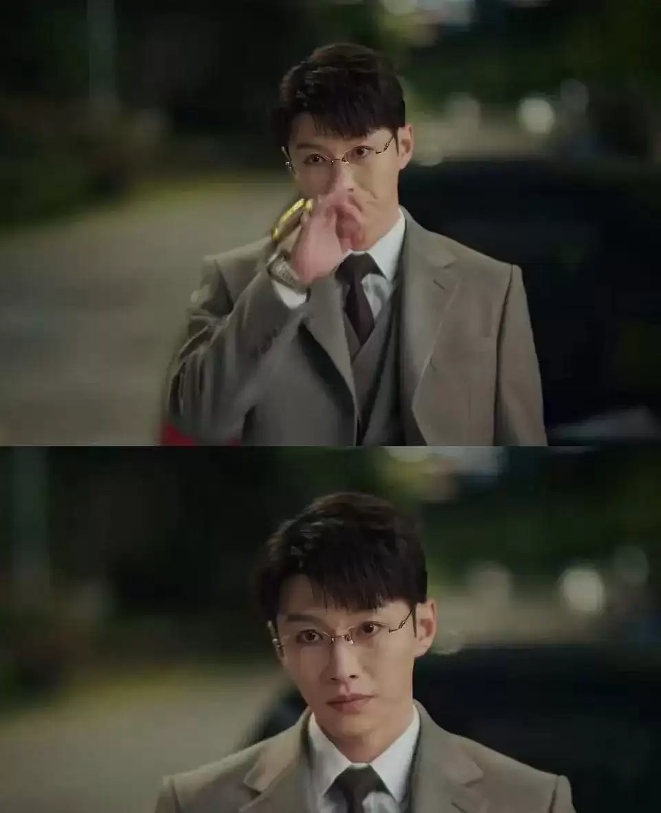 出场才几分钟,人物相当吸睛,西装革履,戴金丝边眼镜,浓密如眼线的睫毛,斯文腹黑的劲儿。