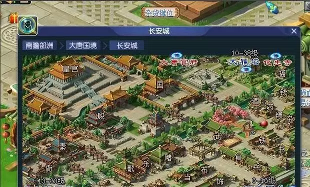 摆摊的第一步,是前往长安城,寻找一个人流量大的合适位置。具体选哪里,可以根据你所在服务器的实际情况来决定。