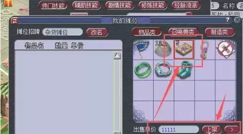 界面打开后,从你的背包里选择想要出售的物品,输入一个合理的售价,然后点击“上架”按钮,你的小摊就正式开张了。