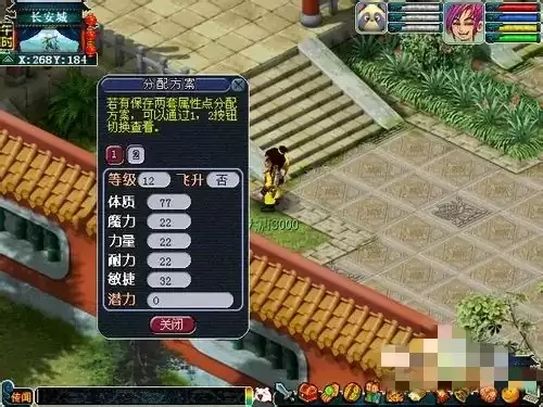 玩家可以前往长安城的云游仙人处(坐标264,185),保存自己当前的属性点分配方案。之后只需消耗一定费用,即可随时切换回之前保存过的方案。保存次数没有限制,总共可以保存三套方案,目前每天允许切换属性两次。