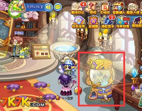 想要找到这台扭蛋机,你需要前往魔法学院的教学楼,进入宠物训练室就能看到它。直接点击右侧的扭蛋机即可开始互动。