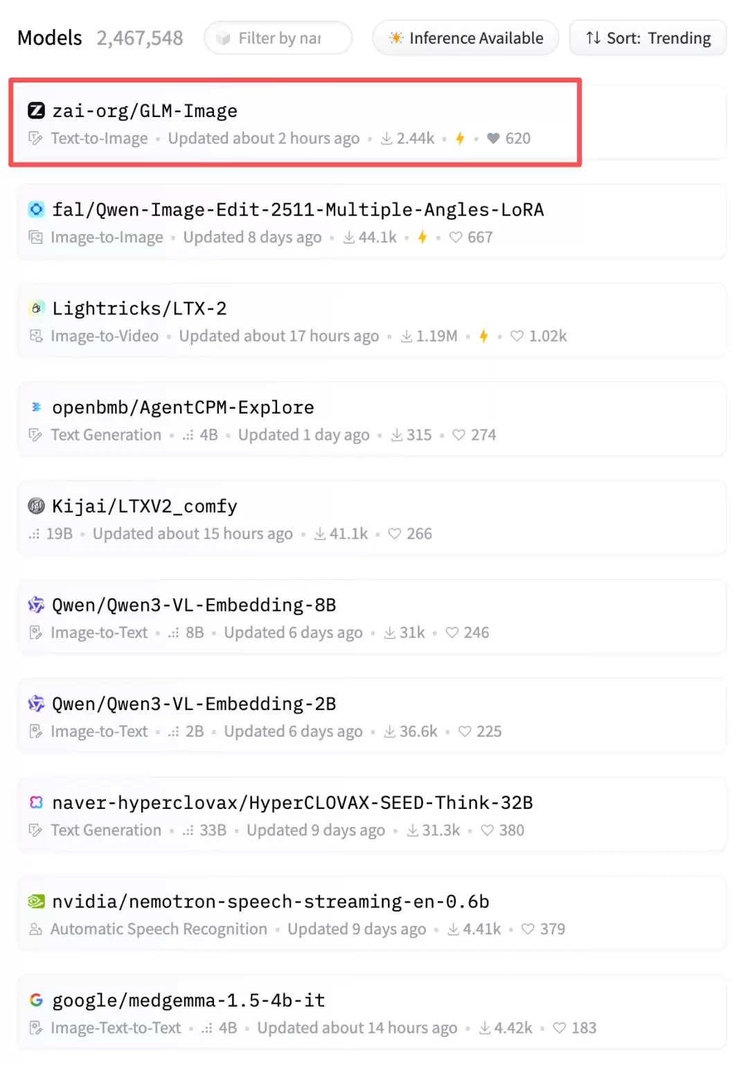 华为与智谱首次合作:GLM-Image模型登顶Hugging Face榜单