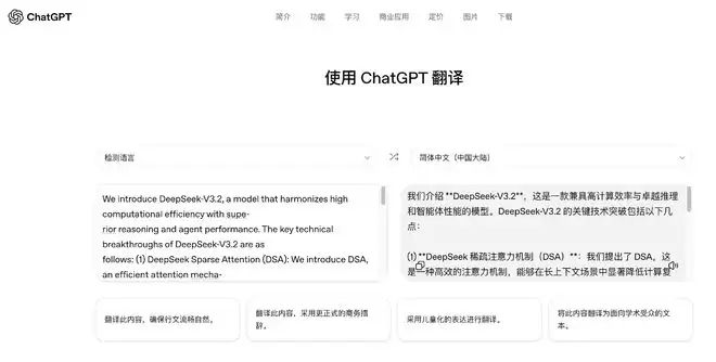 那么,ChatGPT翻译的优势究竟在哪里?其最新介绍中提到,它的特点在于能够理解语境和语气,支持正式、日常或地域化的表达。例如,它可以用儿童化的表达进行翻译,也可以采用正式的商务措辞或面向学术受众的文本来进行翻译。