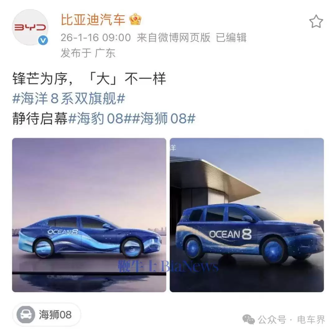 比亚迪海洋网新旗舰发布:海豹08与海狮08首发亮相