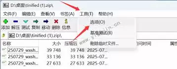 第一步,打开你电脑上的 7-Zip 软件主界面。在软件界面的顶部菜单栏里找到并点击“工具”选项,接着从弹出的下拉菜单中选择“选项”。