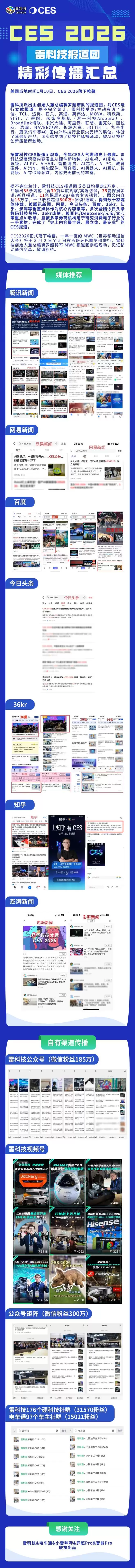 据不完全统计,雷科技 CES 2026 报道团成员日均暴走 2 万步,一共输出 83 篇内容(含 38 篇深度观察/高端访谈,35 篇探展资讯/新品报道,10 条探展视频),内容整体超过 16 万字。雷科技 CES 2026 全精品内容,可全网搜索「CES」或「CES2026」进行查阅。