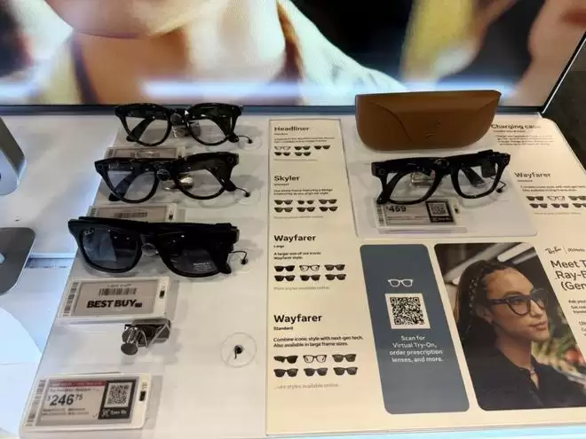 小雷在拉斯维加斯这家百思买也看到了占据醒目位置的智能眼镜专柜,不过目前只有 Meta 品牌眼镜的陈设。其实也好理解,现在的美国市场,智能眼镜这一块,只有 Meta 和其它。