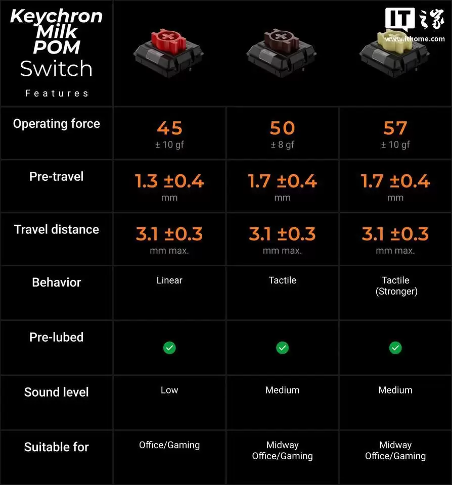 据介绍,这款键盘以标准版K3 Max低矮轴机械键盘为基础,将机身外壳升级为胡桃木实木材质,并搭载了全新的Keychron Milk POM低矮轴体。键盘依旧采用标准佳达隆KS-33热插拔轴座,用户后续可自行更换喜欢的轴体。键帽方面,该键盘延续了Keychron常用的LSA键帽高度,采用双色注塑PBT材质。