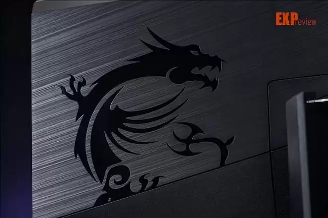 因为凸起区域的面积实在太大了,反倒显得MPG 272QRF X36的背面十分的干净利落:一道剪切线,分开了磨砂和拉丝两个表面。左侧仍然是巨大的微星标志性龙徽,右侧有如跑车进气格栅的地方其实是RGB灯带的所在。附带一提,MPG 272QRF X36通过了Windows 动态照明认证,可以直接通过Windows设置直接控制该灯带的效果(前提是连接USB上行端口)。