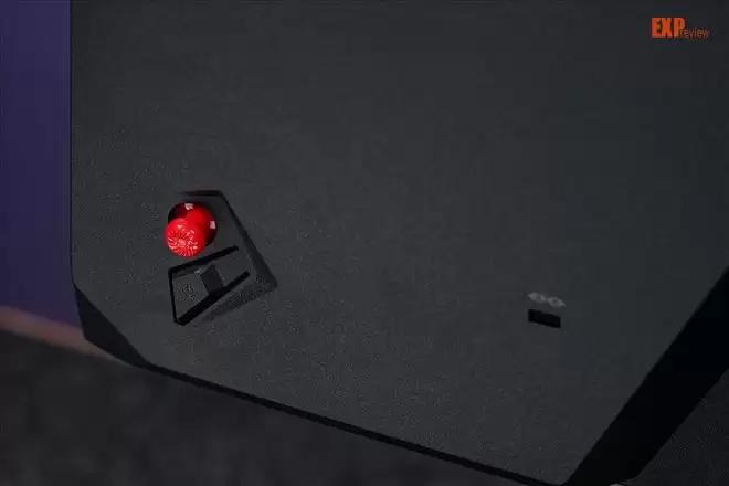 同样值得注意的一个点是,MPG 272QRF X36的按键和摇杆并不在经典的位置,也就是正面的微星LOGO下方,而是在右侧(这里是以玩家面向来说)。而且布局方面也有所变化:仅是摇杆和电源按键各一个。不远处就是Kensington锁孔。