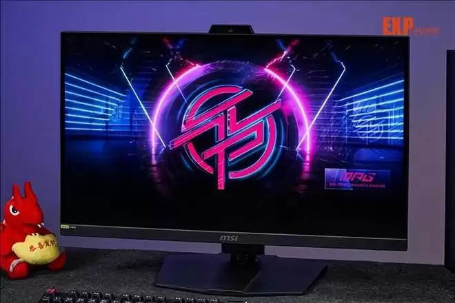 就拿最有可能相似的正面来说吧,平时的显示器在这里就是一块平面,再加下面一边塑料带,MPG 272QRF X36也有这些,但它还在顶部放了个梯形,像是某些笔记本的前置摄像头。但这个并非摄像头,而是G-SYNC智能环境光技术的传感器——这个我们下面再说。