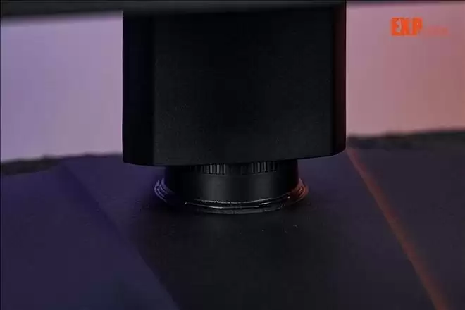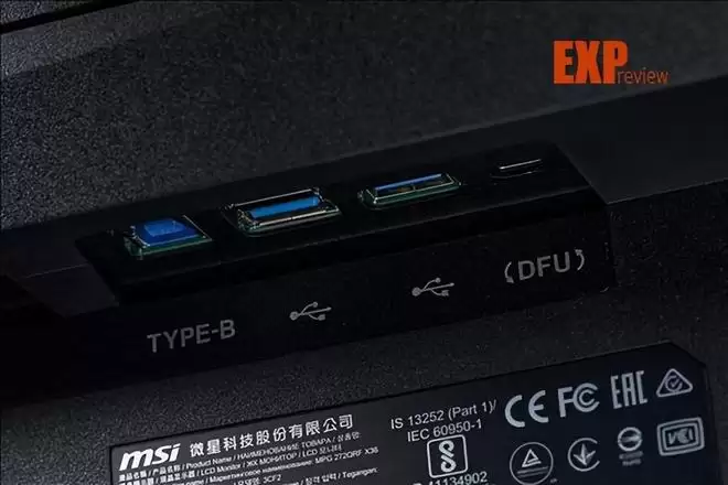 下探到接口区域,从左数起是电源接口、3.5mm音频输出;2个HDMI 2.1和1个DisplayPort 1.4。跨过一条塑料带,则是1个USB 5Gbps Type-B上行端口和2个 USB 5Gbps Type-A下行端口。最后是一个USB 2.0 Micro-B接口——这玩意在显示器上算得上稀客,它也是跟G-SYNC Pulsar有关的,用于升级显示器固件,更进一步来说,这个接口只用于升级显示器固件,没别的功能。