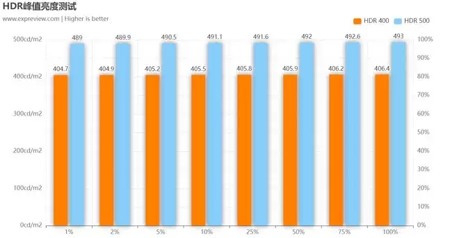 标准模式的最大亮度为493.5nits,符合标称规格。省电模式的默认亮度则是159.9nits。