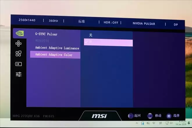 在提高动态清晰度之余,MPG 272QRF X36还带来了G-SYNC智能环境光技术(Ambient Adaptive Technology)。它可以根据环境光线自动调整亮度和色温,以达到更舒适的观看体验,就跟你手机上面的自动亮度和色温自适应这些功能一样。