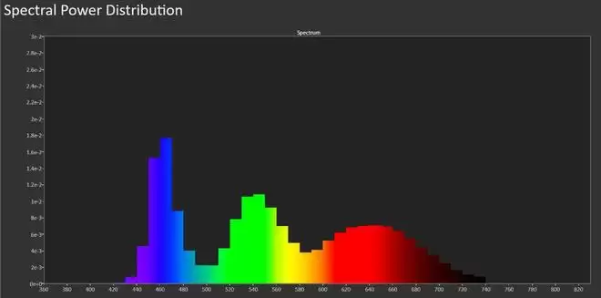 MPG 272QRF X36的光谱分布是明显的WLED IPS显示器,也就是蓝光比较突出,绿和红光较低的形状,蓝光波峰在460nm处。和其他微星显示器一样,MPG 272QRF X36也获得了德国莱因 TÜV Low Blue Light (低蓝光) 认证,而且是硬件级的。